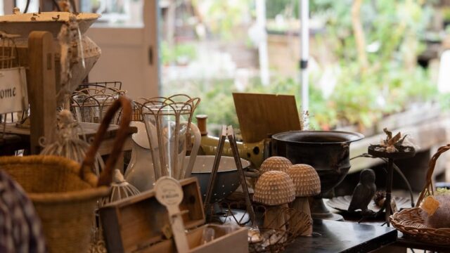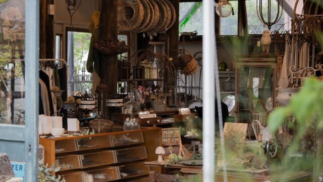 草花に囲まれながら雑貨を眺める時間が自然と長くなってしまう、そんな居心地の良さがあります。