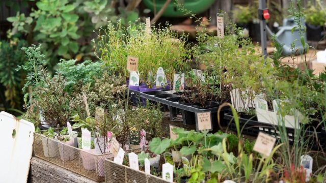 春と秋の回転期間、店先に宿根草や観葉植物、一年草が並び、普段は見かけないような個性的な草花にも出会えます。