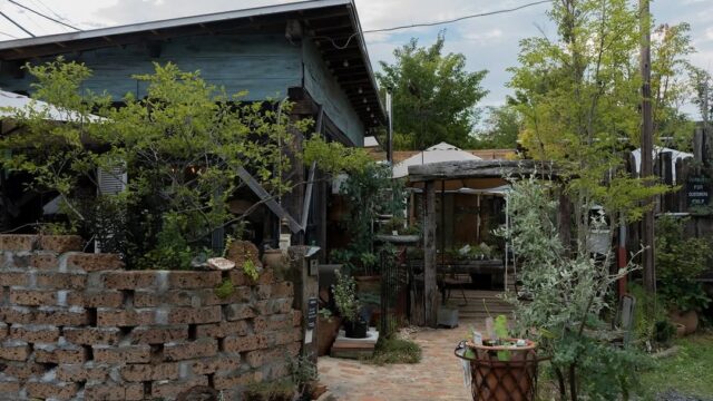 倉庫をリノベーションした店舗は入り口のドアや看板に旧店舗の資材が再利用されていたり、