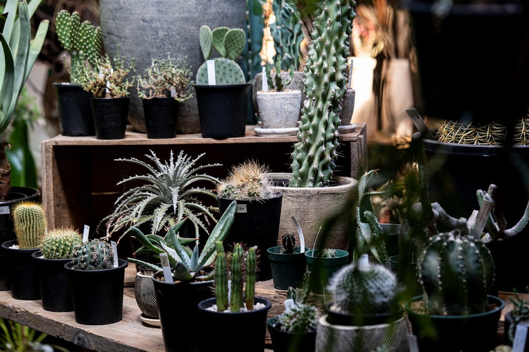 観葉植物や多肉植物、珍しい品種など多数のグリーンを扱い、生花、ドライフラワー、花器や鉢などの植物関連アイテムも販売しています。