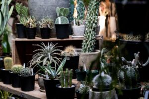 観葉植物や多肉植物、珍しい品種など多数のグリーンを扱い、生花、ドライフラワー、花器や鉢などの植物関連アイテムも販売しています。