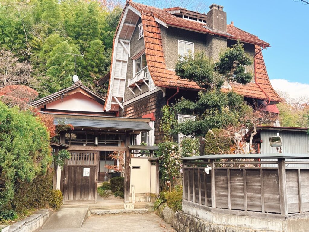 黒漆喰の渋くて趣のある外観、店内には大正浪漫を感じさせる和洋折衷の調度品が並びます。