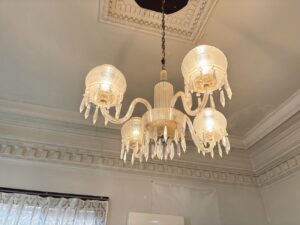控えめで上品なシャンデリアは、クラゲがぷかぷか泳いでいるような少しの遊び心も垣間見せる。