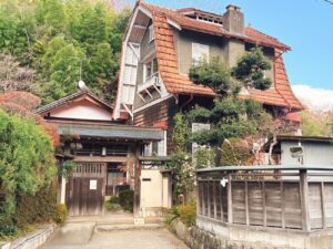 だらだらと長い坂道を登り続けていると、どこかで見覚えのある家が見えてきた。「となりのトトロ」で見たあの家に似ているが、こちらは二本松銀行頭取を務めた田倉孝雄氏が迎賓館として建てた家。洋館と日本家屋がくっついた形は、建てられた当時(1925年)に流行したスタイルらしい。今はカフェとして営業していると聞いたら、立ち寄らずにはいられない。