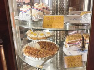 この店のケーキはアメリカの家庭で食べられる素朴なもの。ピーカンナッツのたっぷり乗ったケーキやバタークリームのケーキ…どれもどこかで見たことがある気がする。最後に見たのはきっと遠い昔、子どもの頃に行ったあの小さなお店だろう。今はコンビニになってしまったあの場所。