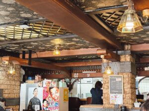 周囲を見渡すと、平日昼の店内は満席。Yシャツや作業服の男性たちが多い。仕事の昼休憩にこの店に集まっているのだろう。この店の内装が中世ヨーロッパ風だから、酒場に戦士達がエネルギーチャージに来ているように見えてくる。