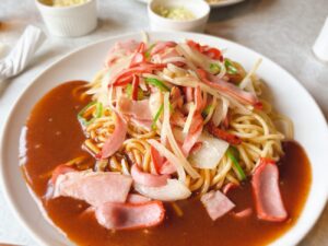 1960年代に誕生し、今や名古屋のご当地グルメとなった「あんかけスパゲッティ」。トマトベースで胡椒を効かせたスパイシーなあんかけと極太麺を合わせてあるのが特徴で、いわゆるパスタやあんかけ焼きそばとは一味違う、独特な食感と味わいをもつ。具材トッピングの豊富さも魅力で、ヨコイでは40種類のメニューを楽しむことができる。