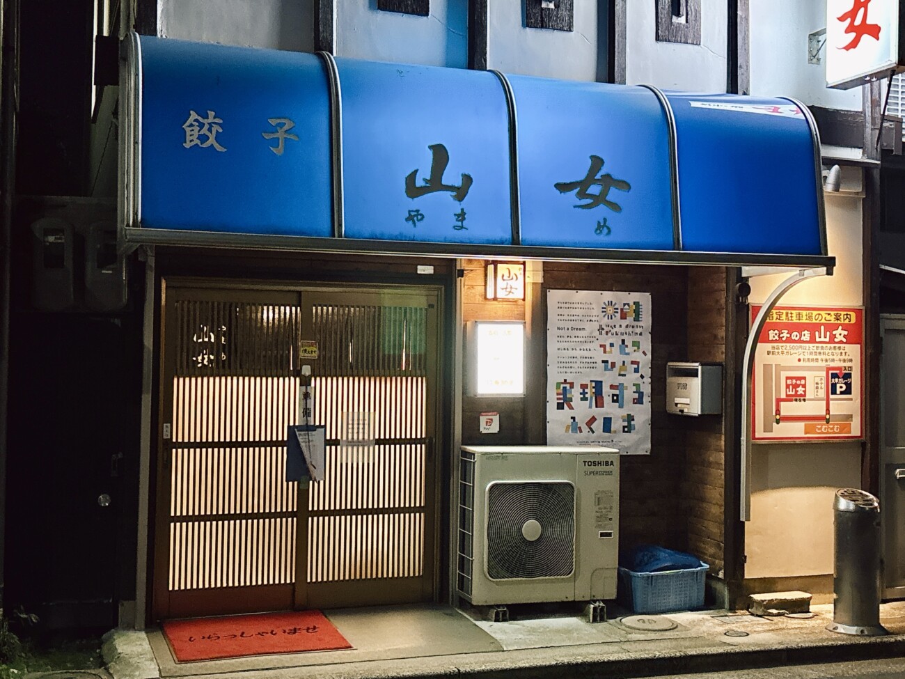 コートの襟元を強く握る。極寒の東北の木枯らしと戦いながらの駅から徒歩6分は6時間のように感じられて、「餃子 山女」の青いファサードを見つけた時はさすがに涙が出そうになった。砂漠でオアシスを見つけた時も、こんな気持ちになるのだろうか。